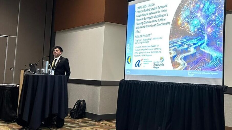 June 2025: PhD student Kobe Yung received the Outreach for Engineers Scholarship and presented his paper at the 44th OMAE Conference in Vancouver, showcasing his research on AI-based surrogate modelling for floating offshore wind turbines.